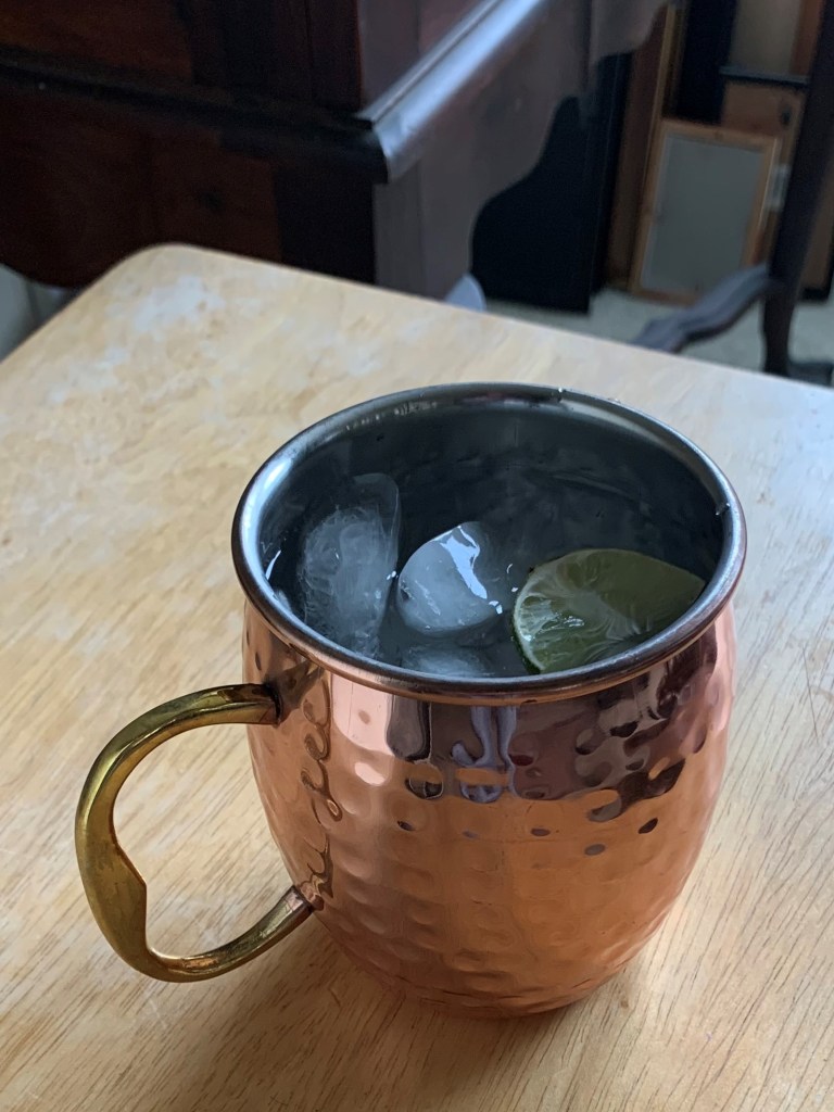 - Pour Vodka and Ginger Beer into the copper mule mug.