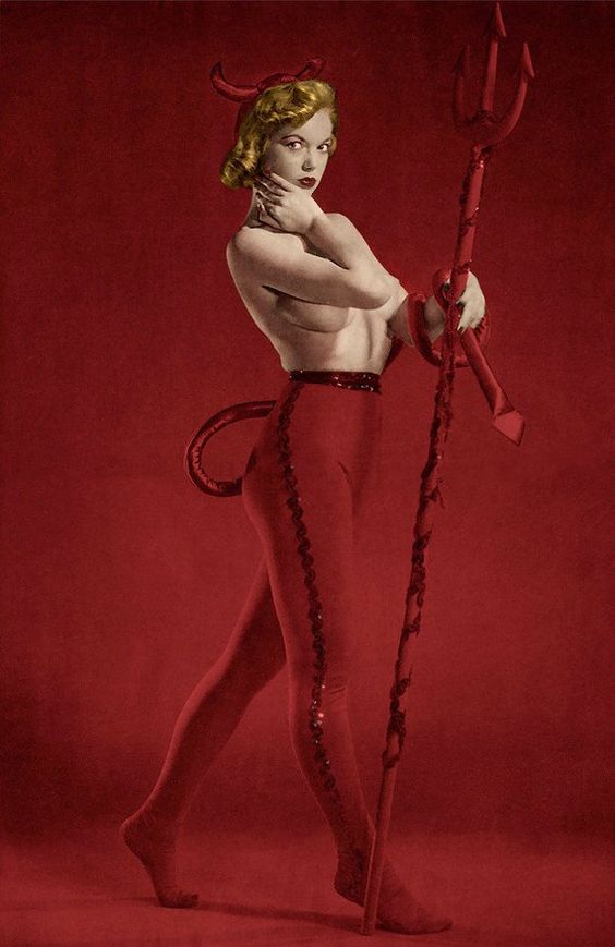 3-29-20: 1940s Retro Art: Sexy Naughty Devil Pin-up (By: Etsy: Antiquephotoarchive)