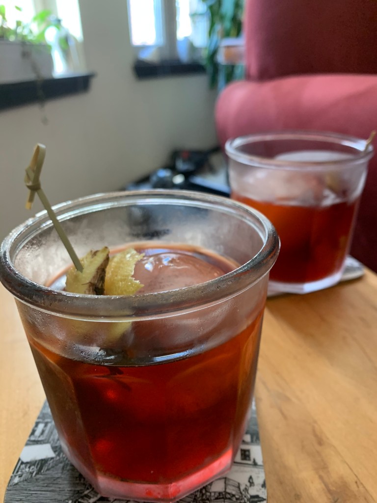- Different take on a negroni. As the ice ball melted in the drink, it got better and better.