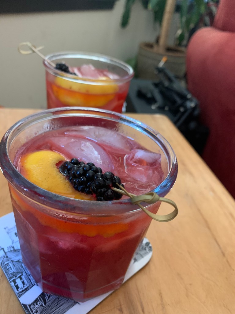 - Garnish with a Lemon🍋 Twist and 3 blackberries on a cocktail pick.