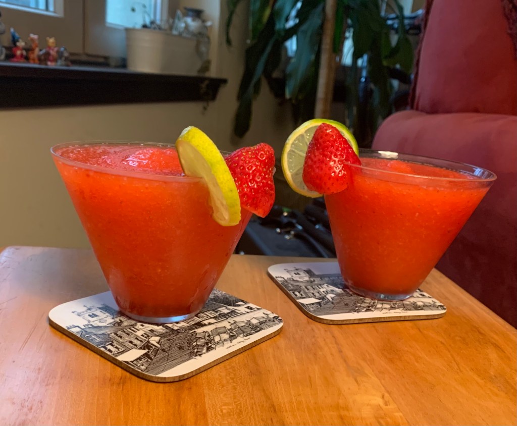 - Garnish with a slice of Lime and a Strawberry🍓.